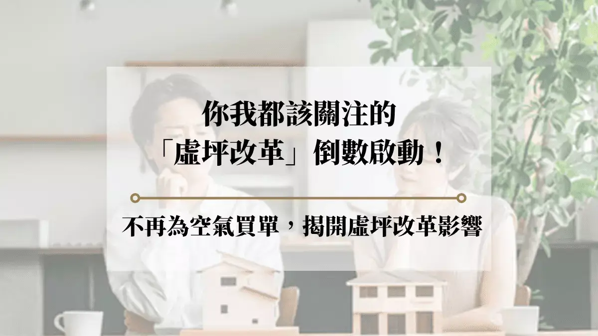 當虛坪改革正式啟動,所有購屋者都將面臨全新的市場衡量標準與心理關卡,你我都有可能是購屋、現有屋主,必須提前掌握這些變動: