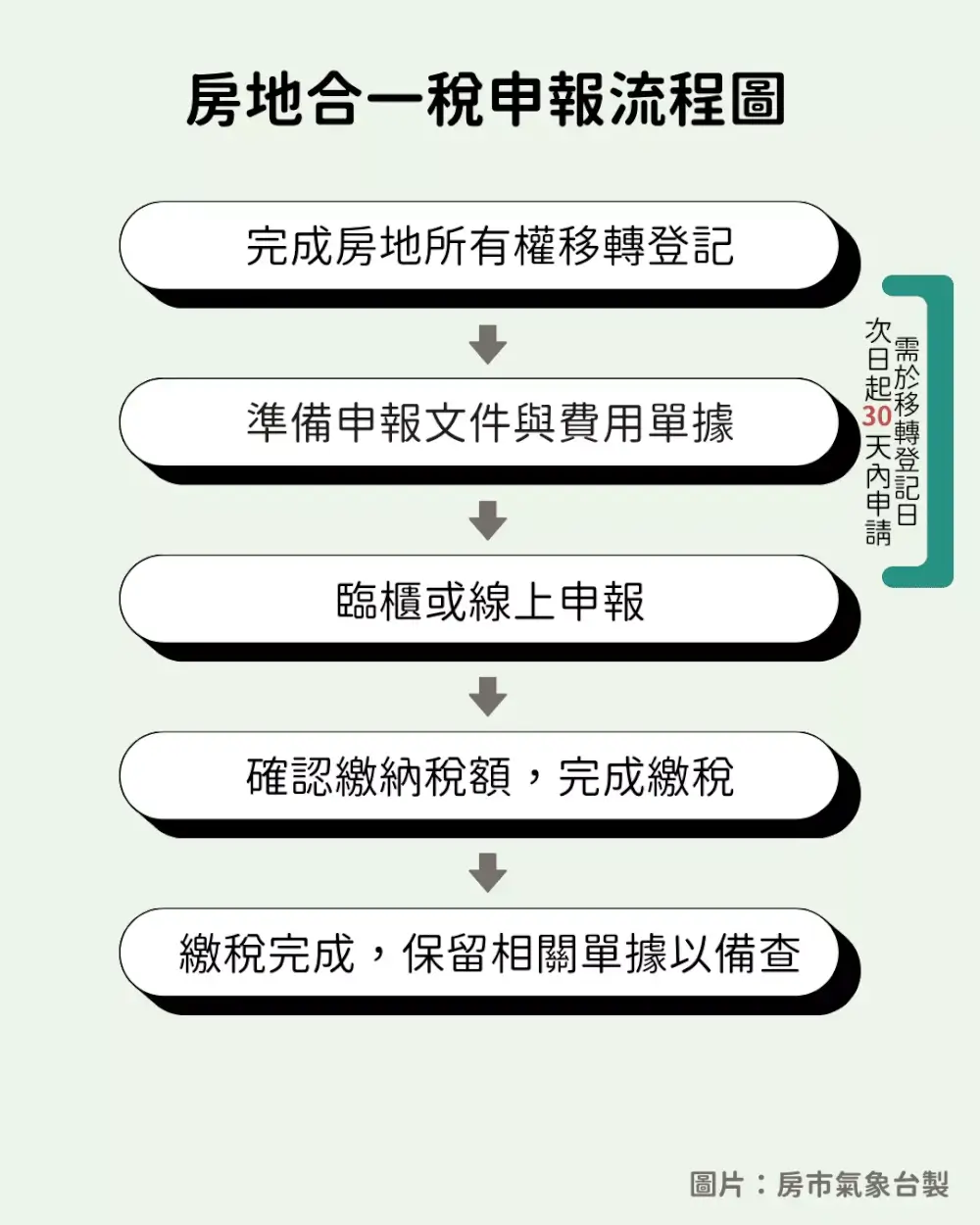 - 申報方式:透過財政部電子申報繳稅系統(需自然人憑證或健保卡)線上申報或至房地所在地國稅局臨櫃辦理。