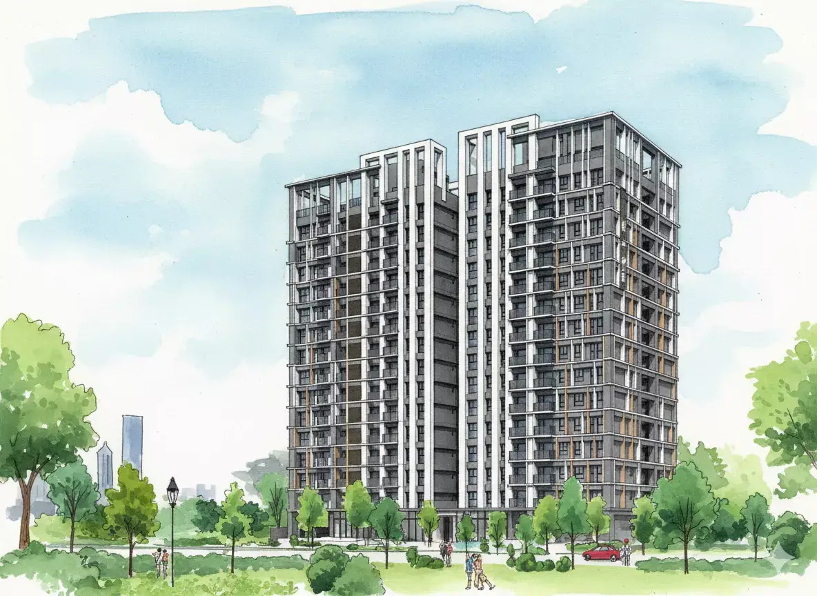行見築在高大特區三案當中,走的是完全不同的路線:不是規模型大社區,也不是強設備型社區,而是一個「低密度、空間感好」的中型自住宅。