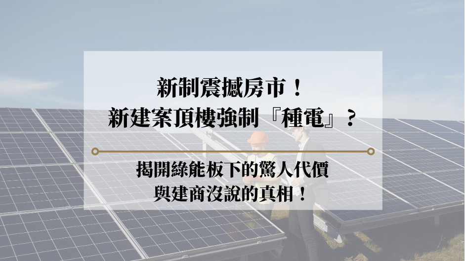 新制震撼房市!新建案頂樓強制『種電』,房價又要噴了?