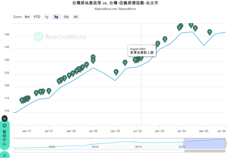 圖1:台灣房地產政策與信義房價指數